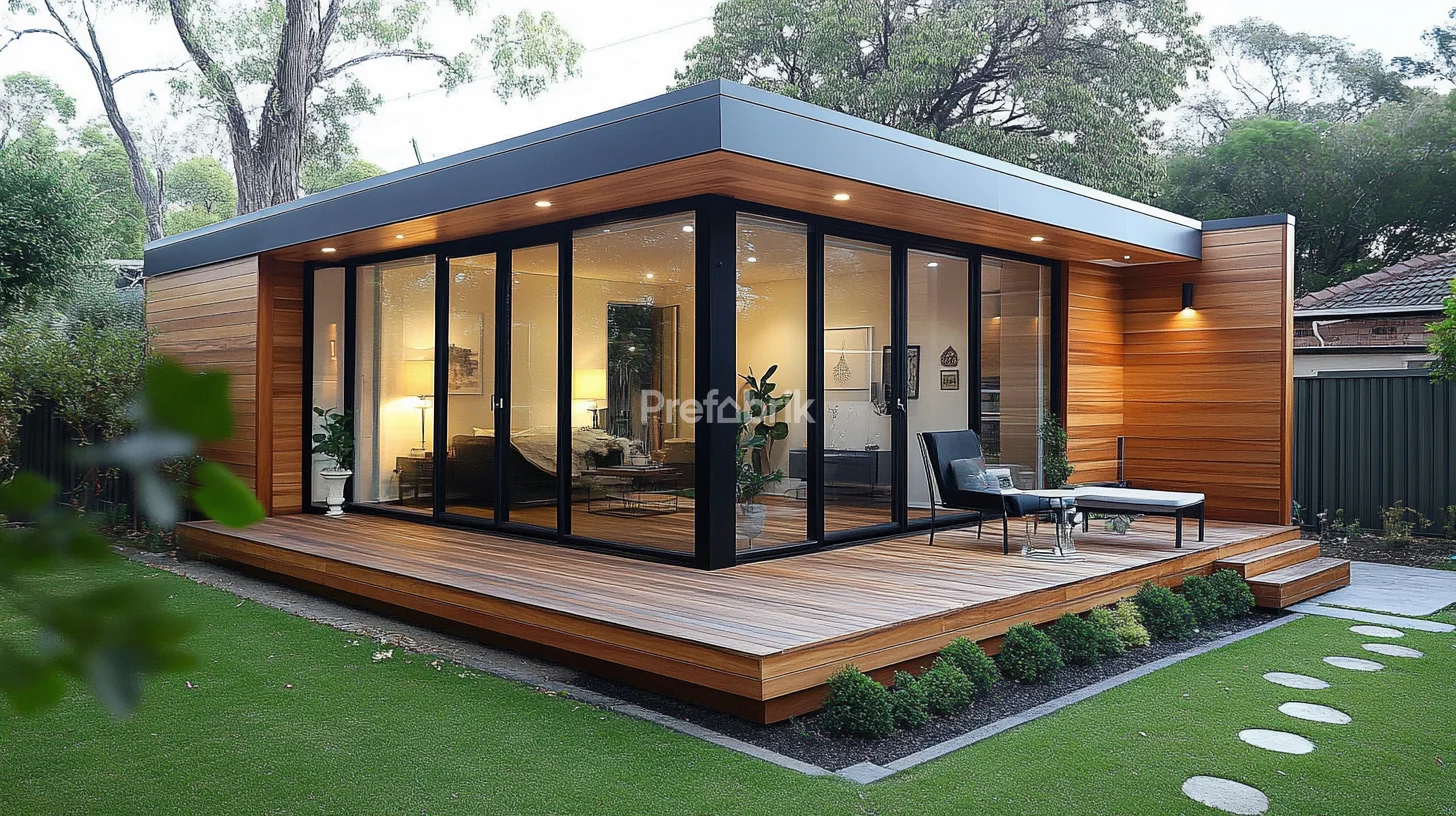 Nuestra casa prefabricada de madera Cedro combina la calidez de la madera con un diseño moderno y práctico.